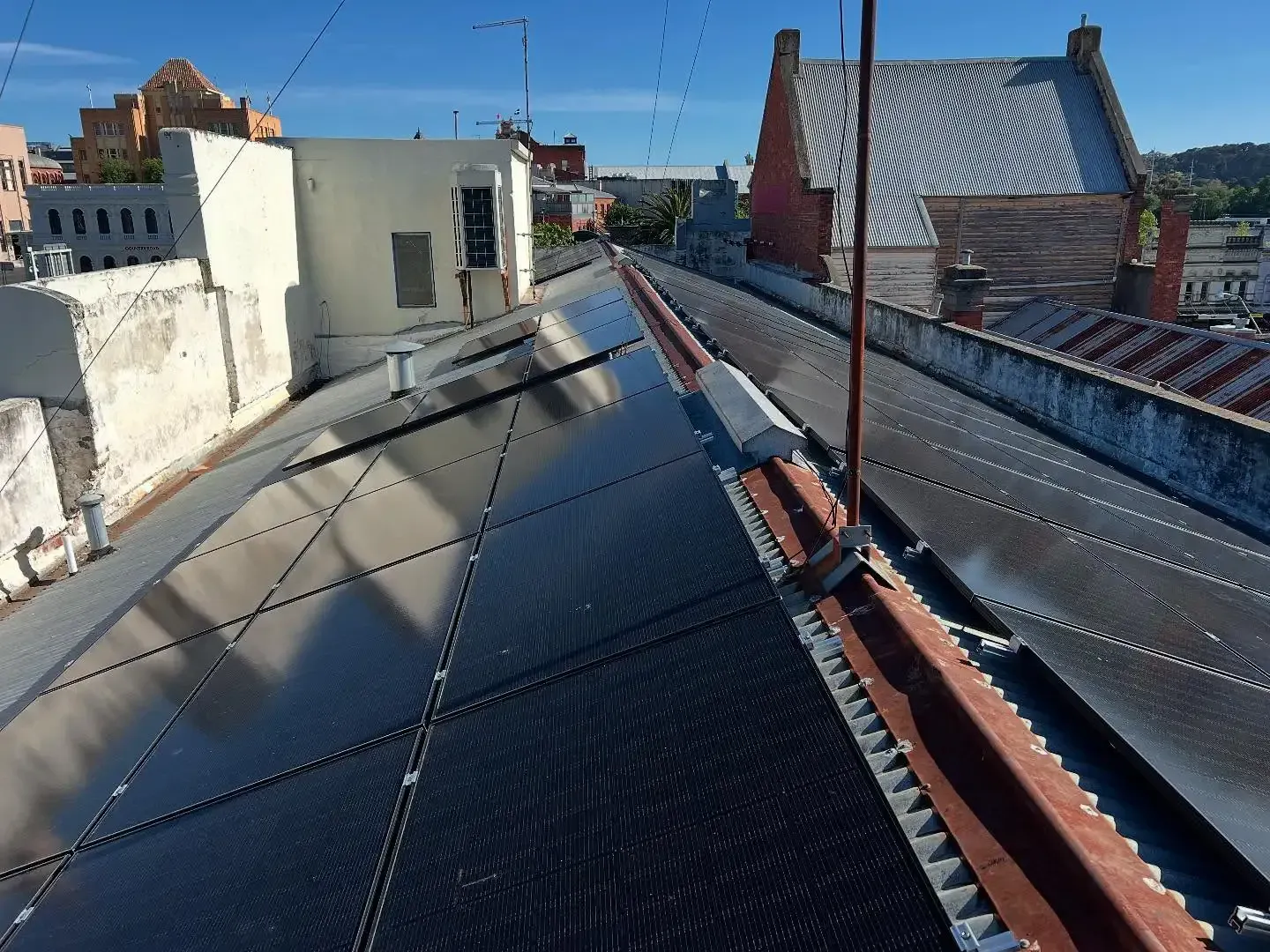 Completing the large-scale job on a veteran building at the bottom of Sturt Street, the Ballarat Solar Group team ticked off three important categories for sustainable and efficient energy: